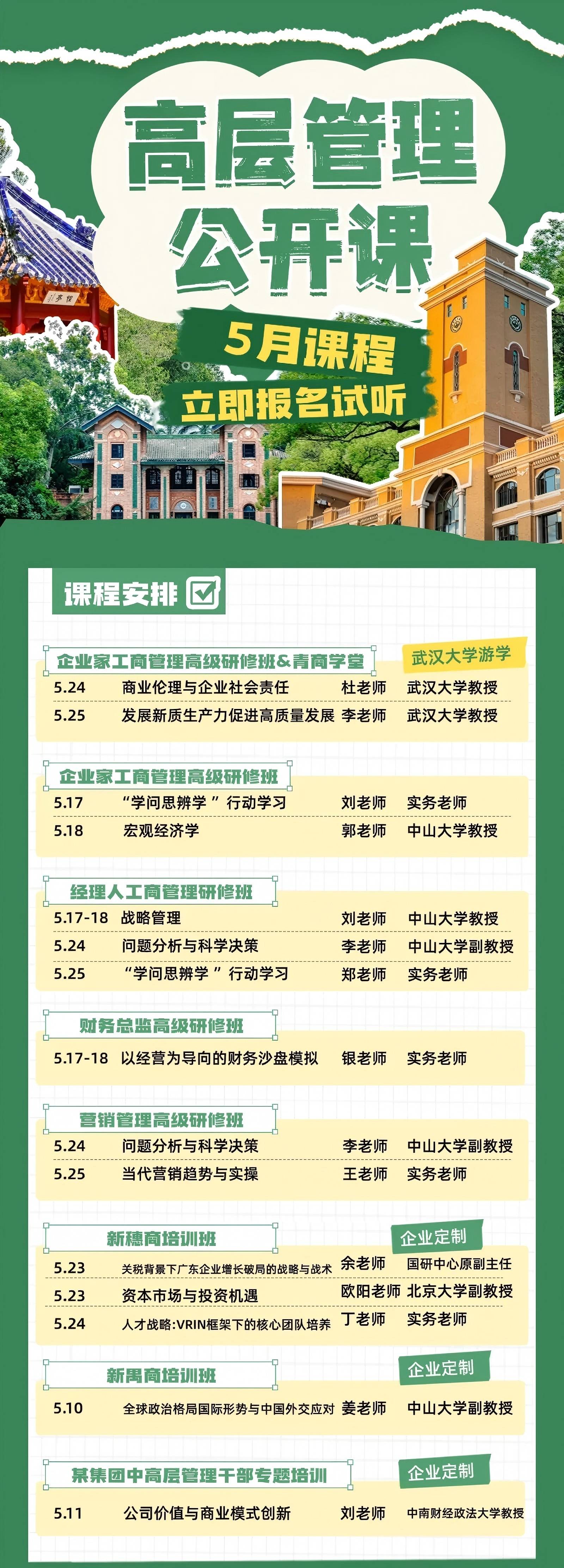 5月高层管理公开课已上线!试听名额限量开放!