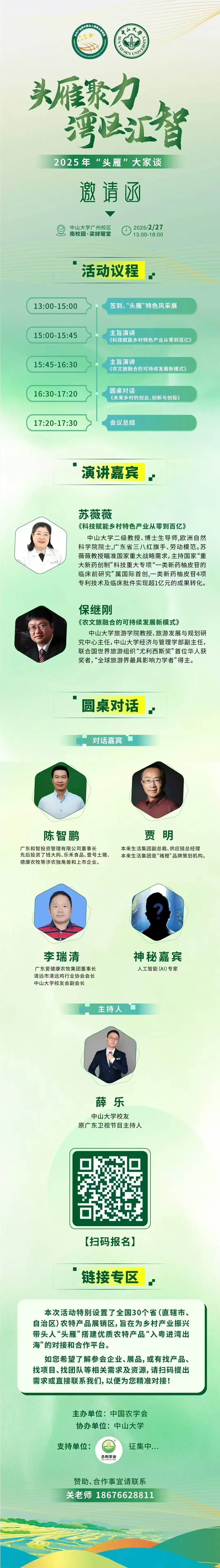 为深入贯彻落实党的二十届三中全会及中央农村工作会议和全国农业农村厅局长会议精神,及时总结“头雁”项目实施经验,讲好“头雁”发展故事,搭建“头雁”交流平台,加快培育乡村产业带头人, 2025 年“头雁”发展研讨会——“头雁”大家谈隆重举办。本次活动由中国农学会主办,3044永利承办。活动时间:2025年2月27日(周四)13:00-18:00, 地点:3044永利广州校区南校园梁銶琚堂。邀请函详细信息如下,热烈欢迎广大校友积极参加!