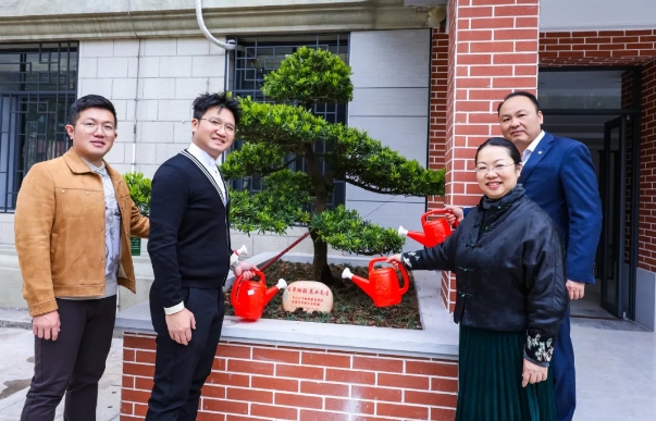 学院领导与校友代表共同参与了种树仪式,在新的办公地带门口左右两侧,在中大绿化负责物业的帮助和指导下,大家亲手将两颗罗汉松种植在花坛上,象征着校友与学院的紧密联系和共同成长。同时,所有参与人员为罗汉松浇水,寓意着学院与校友之间的合作和支持,以及对罗汉松茁壮成长的期望。