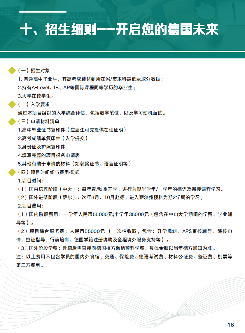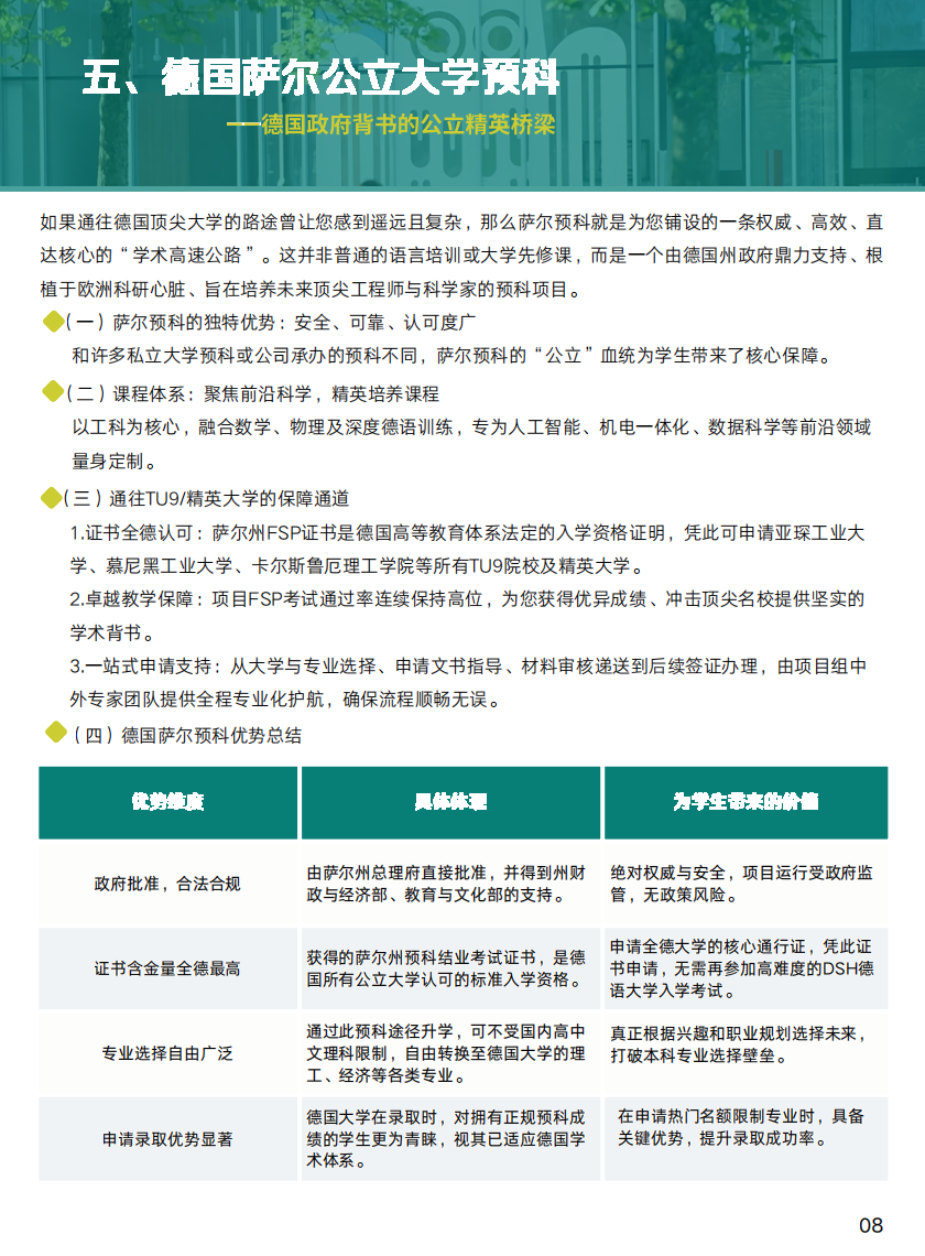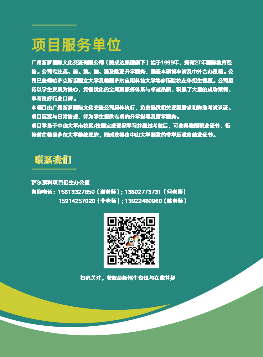 导航痕迹 首页 办学项目 国际教育 委托项目 德国萨尔公立大学预科项目 德国萨尔公立大学预科项目 发布人:网站编辑 发布日期:2026-04-14 相关资讯 2026-04-14 创业大赛|广东“众创杯”大赛报名通道已开启 2026-04-14 中外双校园联合培养国际项目【IFC国际预科(1+3)/ IYO留学课程(2+2)】 2026-04-14 全球名校卓越培养计划 2026-04-14 高才港新国际班(出国预备人才培养项目) 2026-04-14 德国萨尔公立大学预科项目 扫描此二维码分享