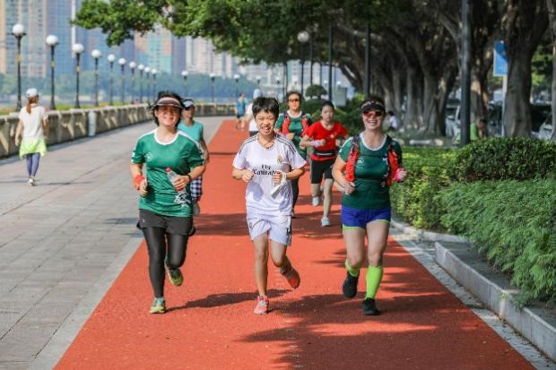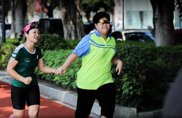在明媚的阳光下,沿珠江奔跑,校友们牵着孩子的手,左右相伴,汗水湿透衣裳,一张张灿烂的笑容,一步步脚踏实地,勇敢而坚强!