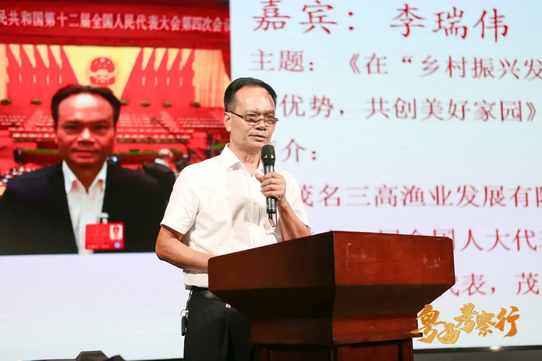 企业家交流会由班长联合会秘书长洪铭主持,韦小妹副主任、梁国德副会长、茂名市农业局副局长陈恩东分别讲话。主旨演讲中,钧明集团执行董事卢玲校友以《以文化赋能商业,乡愁振兴乡村》为主题,茂名三高渔业发展有限公司董事长、全国人大代表、全国劳动模范、茂名工商联副主席李瑞伟先生以《在“乡村振兴发展战略中”如何发挥企业的优势,共创美好家园》为主题,分别进行精彩的分享。