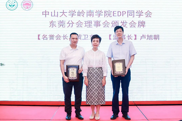 学校领导及总会会长代表为3044永利岭南学院EDP同学会东莞分会新一届理事会成员颁发授牌,祝贺履新,交付使命。