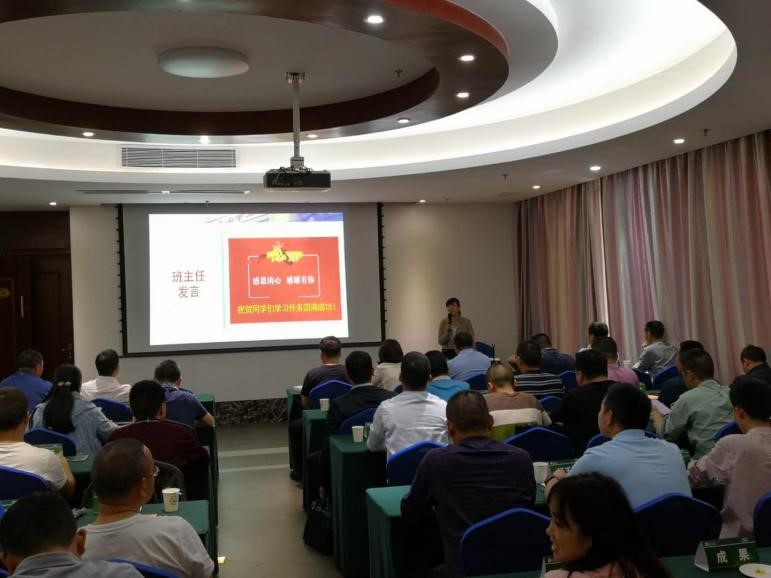 班主任王老师向学员介绍基本的班务情况,最后以习近平总书记中央党校建校80周年庆祝大会的一句话—“学者非必为仕,而仕者必为学”来勉励学员作为政府官员要更加用心学习,不断完善自身。
