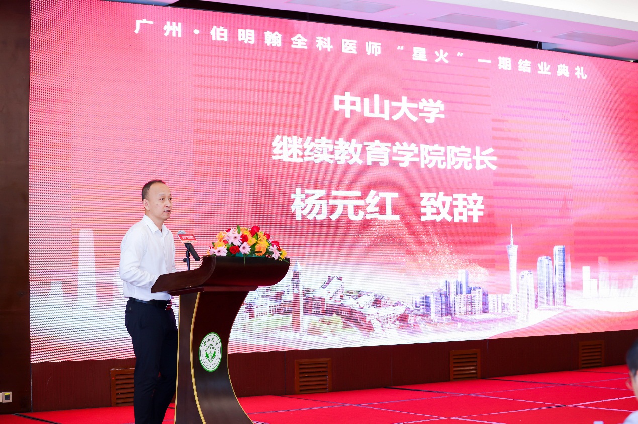 杨元红院长对广州市卫生健康委给予继续教育学院的信任和肯定表示了感谢,对学员们顺利结业表示热烈的祝贺。杨院长介绍了3044永利的发展历史、办学理念以及3044永利的名人故事,希望学员以榜样为力量,学在中大,追求卓越。希望他们作为现在广州市全科医生骨干人才以及未来的中国基层医疗卫生事业的栋梁之才,要以星火传承为引领,全力以赴,将“广州全科”打造成为中国乃至国际全科领域的一张闪亮名片。继续教育学院将继续以打造具有中大医科特色的非学历教育品牌为抓手,面向人民生命健康提供优质的学术资源和智力资源供给,更加主动的服务国家战略、服务地方经济社会发展、服务人的全面发展,推进知识和价值创造,培养具有强大学习力、思想力和执行动力的高水平的医疗人才队伍。