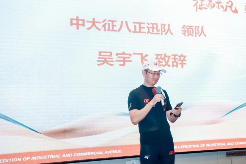 中大岭院EDP同学会副会长、中大征八正迅队总冠名单位——正迅保险经纪董事长杨柏生校友致辞表示,作为戈友荟一员也曾参与领军新丝路的戈壁赛事,收获了难得的戈壁赛事体验以及珍贵的校友情谊,并养成了健康积极的运动习惯。非常荣幸正迅保险经纪能够参与支持学校以及征八队伍的工作,希望争取加入明年征九队伍之中,并祝福征八队员们自信迎战,超越自我。