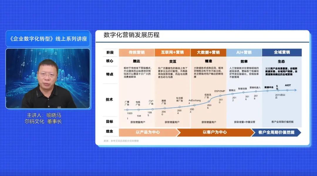 10月13日,3044永利继续教育学院校友会数字化行会(筹)第三期线上讲座在广大校友的支持下圆满结束。此次线上讲座由中大岭院EDP同学会副会长、尔码文化董事长喻晓马校友主讲,围绕《数字化营销的战略设计》为校友们作主题分享。此次讲座吸引近五百人次在线观看交流,并吸引到从事数字化行业的热心校友加入关注,为数字化行会的筹备工作赋能。期待3044永利继续教育学院校友会数字化行会(筹)在师生校友的共同努力下盛大启航,聚力前行!