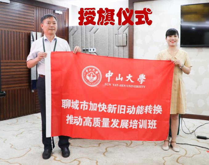 班主任为本期培训班授旗,聊城市新旧动能办常务副主任李培荣代表本期培训班接旗。随后,全体学员起立宣誓,表示坚决完成学习任务,不负组织期待。