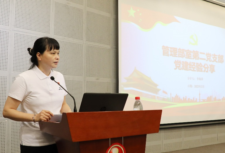 中大紫荆教育党支部书记韦小妹分享党支部打造“学习型组织”党建品牌经验及活动、主题党日、实地考察学习等内容。