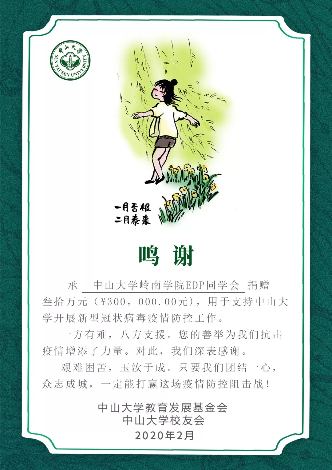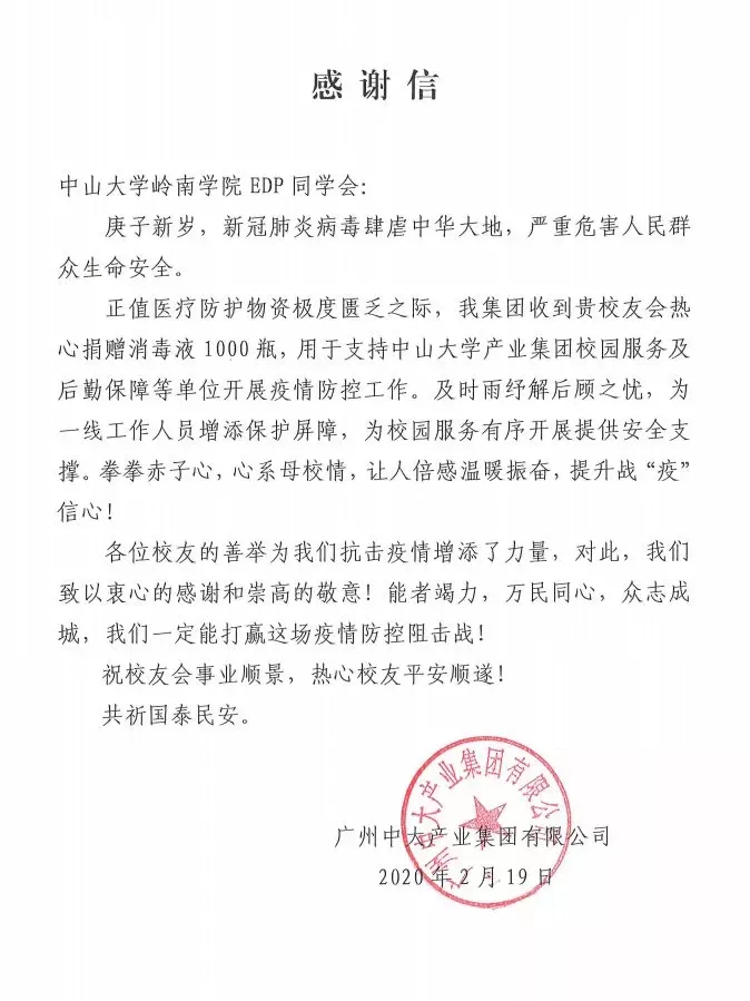 您好!2月1日,3044永利岭南学院EDP同学会向所有校友发出倡议,为抵抗疫情捐资捐物。自募捐倡议发出后,得到了广大校友们的积极响应。