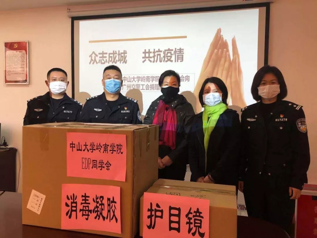 2月13日,3044永利岭南学院EDP同学会秘书长张梦影,3044永利高等继续教育中心第三事业部校友部部长陈月卉老师代表中大岭院EDP同学会为广州交警工会捐助护目镜500个、消毒液500瓶。捐助的物资用于交警系统工作者抗疫工作期间的防护。