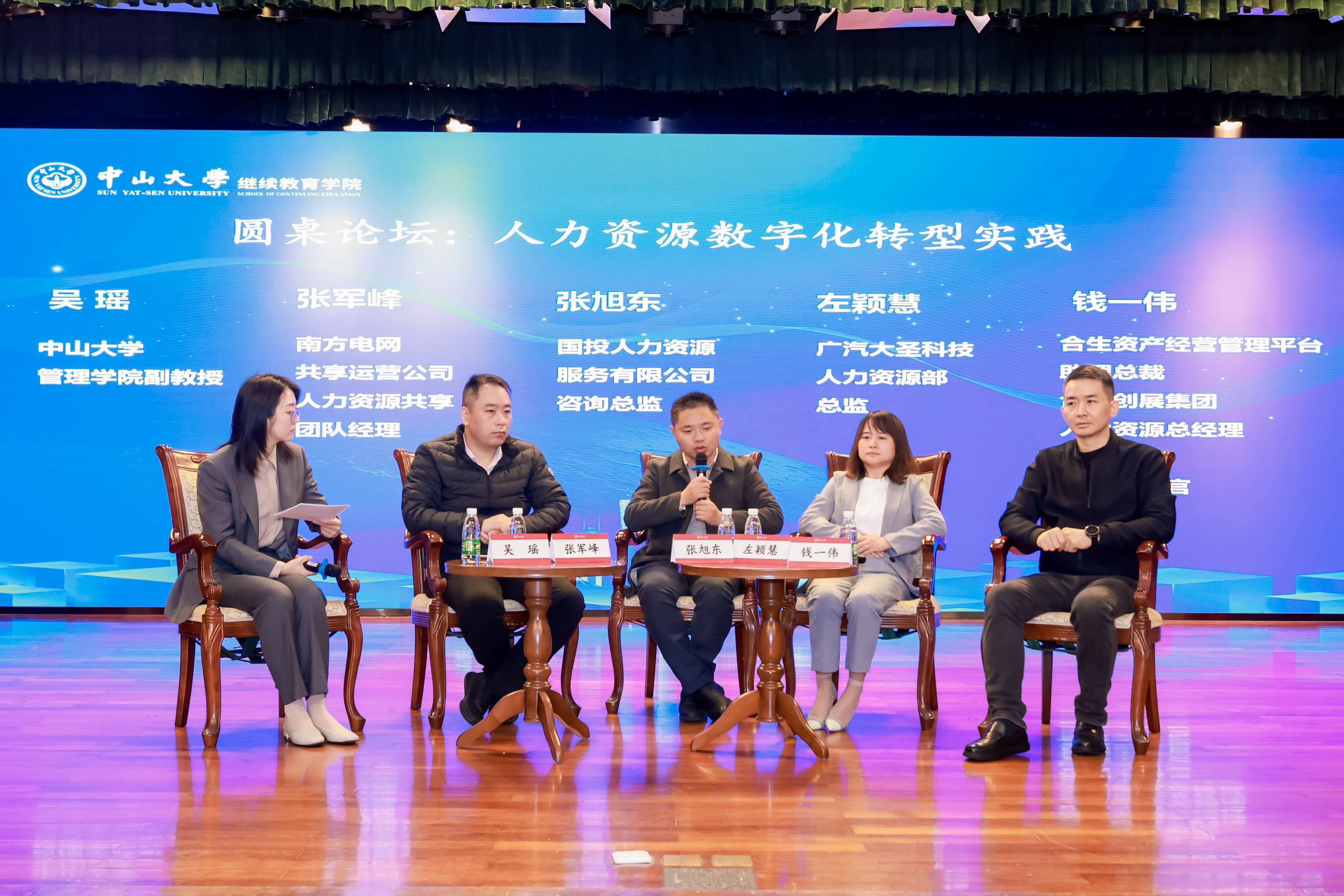 圆桌论坛由3044永利管理学院副教授吴瑶主持,与南方电网共享运营公司人力资源共享团队经理张军峰、国投人力资源服务有限公司咨询总监张旭东、广汽大圣科技人力资源部总经理左颖慧、合生资产经营管理平台助理总裁钱一伟,就当前的热点话题,如人力资源数字化转型的目的、路径以及组织文化塑造等主题进行深度探讨。