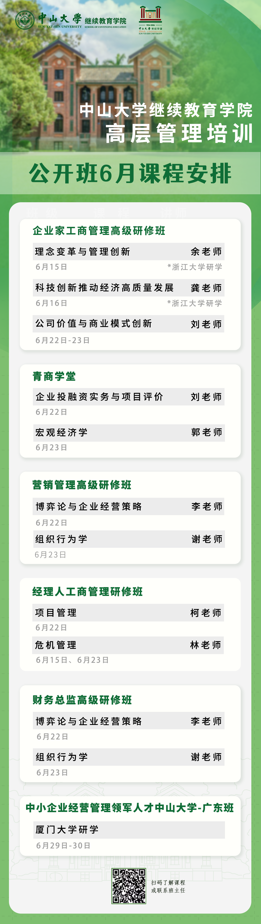 以下是高层管理培训公开课6月课程表,欢迎咨询报名加入新班!