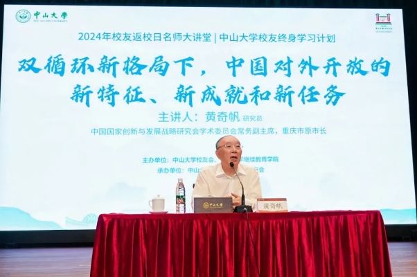 8月28日,“2024年校友返校日名师大讲堂”特邀黄奇帆先生主讲《双循环新格局下,中国对外开放的新特征、新成就和新任务》。