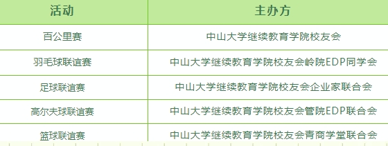 这些活动不仅展现了中大校友的竞技风采,也传递了团结协作、勇攀高峰的中大精神,共同庆祝中大百年华诞,携手迈向新征程。